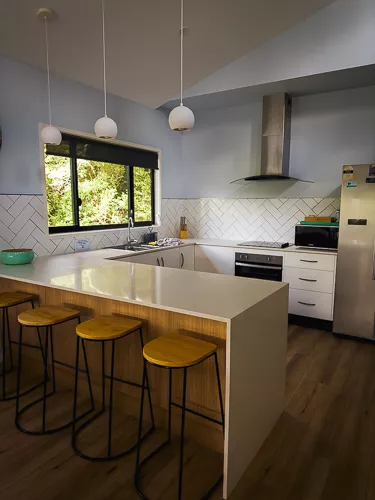Choosing where to stay in Airlie Beach was honestly not easy. We even cancelled our first Airbnb after reading more reviews and decided to change plans last minute. Looking back, it was absolutely the right move. We didn’t regret it for a second. In the end, we stayed in one of the coolest accommodations of our whole trip. Set up in the hills above Airlie Beach, it was just a 10-minute drive from town, but it felt like a completely different world. Especially in the early morning hours, the views were incredible. Waking up to parrots, watching the sunrise, and having breakfast on the terrace with that scenery was something really special. Moments like these stay with you. We honestly wished we had stayed longer. It felt calm, spacious, and far away from the busy center, while still being super accessible. And because this always comes up in this region: no cockroaches at all. That alone deserves some extra bonus points.